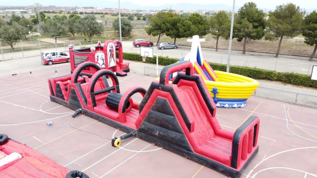 Amb certificacions de seguretat, tots els inflables cumpleixen la normatives europees (UNE-EN 14960/2007)  i juntament amb el personal qualificat, vetllem per la seguretat i el benestar dels participants. Portem  tot el necessari per a la realització d’un dia inmillorable, neteja o generadors, tot lo necessari. Les fotos dels nostres inflables terrestres et mostren l’aventura esperant a cada pas. Transforma la teva celebració amb la nostra gamma única d’inflables. ¡Diversió assegurada!